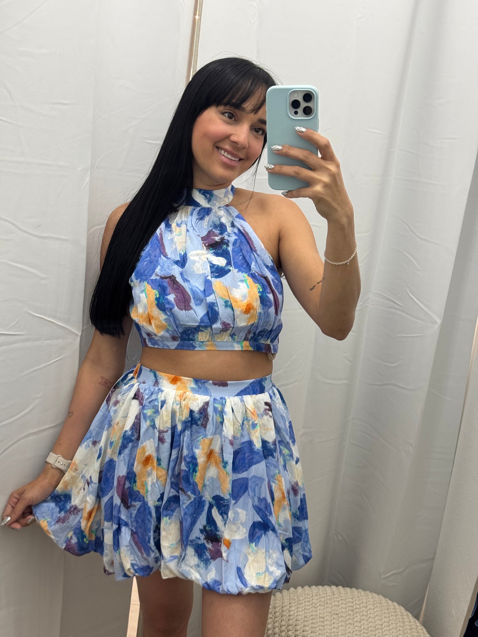 Floral Print Set Skirt Blue