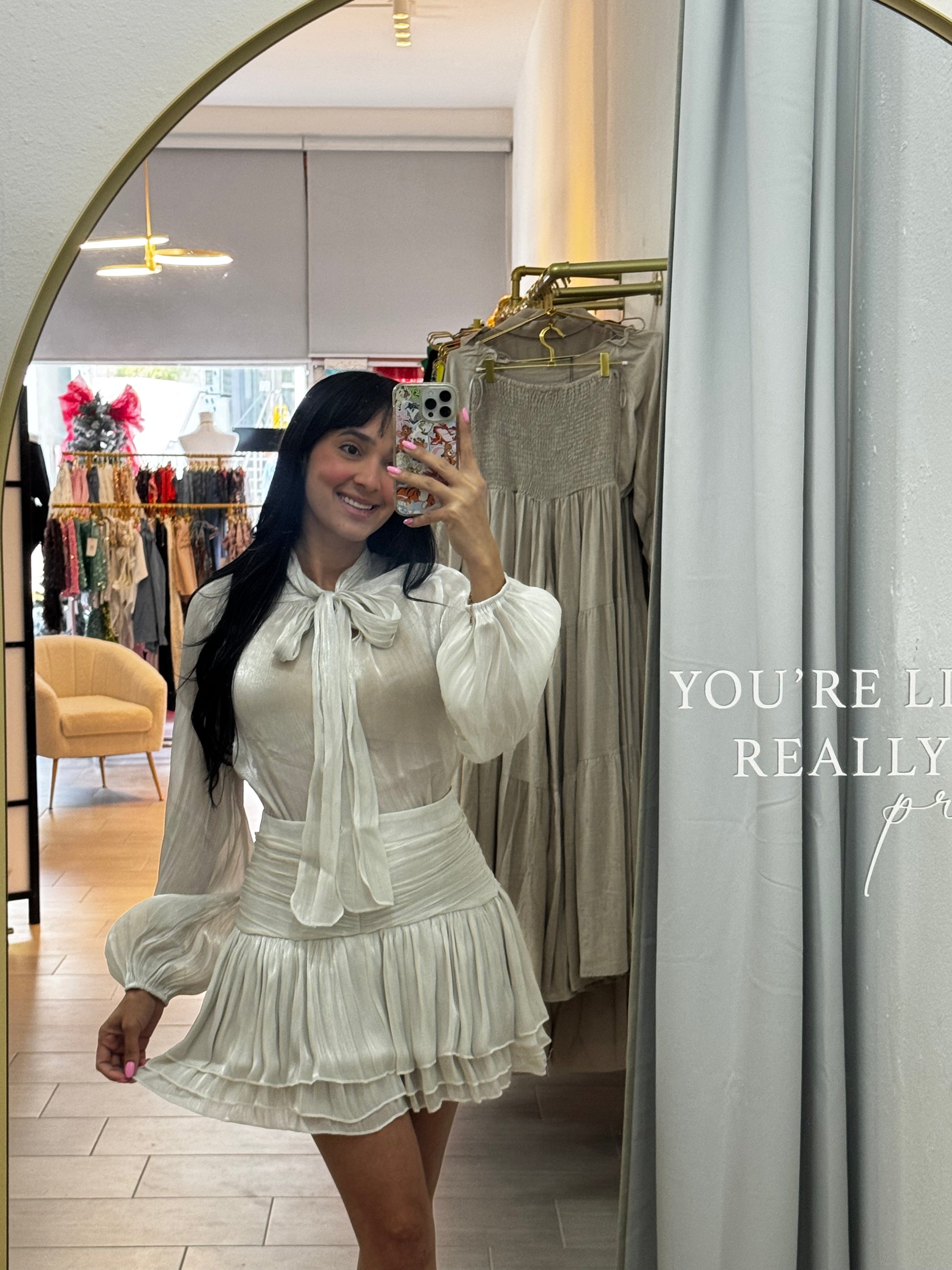 Silver Ruched Skirt Sets